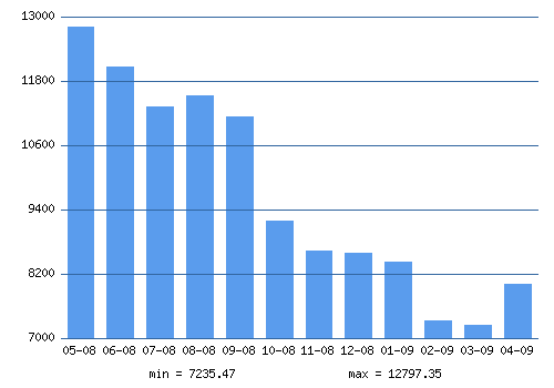 Рис.Б.4. Динаміка доларових еквівалентів обсягів залучених коштів юридичних та фізичних осіб в сумарному балансі комерційних банків банківської системи України у 2008 2009 роках (в млн. доларів США) [60]