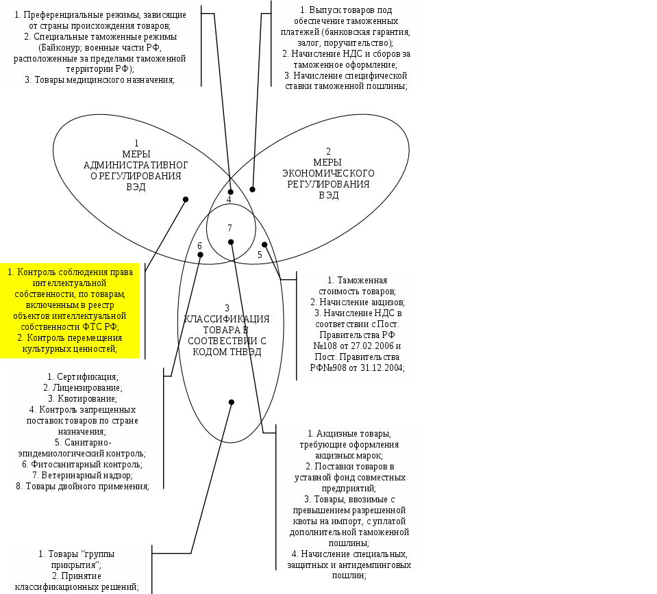 Отсутствие единого подхода к классификации методов регулирования ВЭД усугубляет возникающие трудности при таможенном контроле, так как отсутствует однозначная характеристика применяемых мер с точки зрения ее воздействия на субъекты (участников ВЭД) и объекты (перемещаемые товары и транспортные средства через таможенную границу РФ) ВЭД.