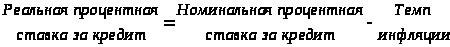 1. Инфляции. Номинальные процентные ставки должны быть установлены на уровне, достаточном для покрытия ожидаемых темпов инфляции в течение всего срока инвестирования, и обеспечивать реальную отдачу. Поэтому [6, с. 47]: