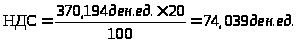 Ц>отп. с НДС> = Ц>без НДС> + НДС = 370,194 ден. ед. + 74,039 ден. ед. = 444,233 ден. ед.