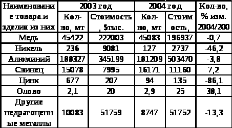 В те же годы стремительно вырос экспорт цветных металлов. Из Украины вывозили все цветные и редкие металлы, готовые изделия и цветной лом, включая разнообразные «серые и черные» экспортные схемы. Вывозили так много, что даже опустошили все многолетние запасы, скопленные во времена СССР.