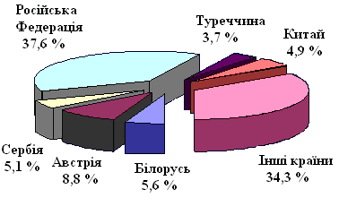 Рис.2 Географічна структура експорту товарів Полтавської області у 2008 році (побудована за даними [3]).