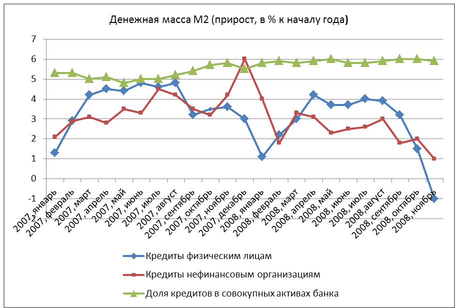Мягкая денежно-кредитная политика, проводившаяся ФРС США с начала 2000-х годов, стимулировала выдачу банками кредитов. Среднегодовые темпы прироста банковского потребительского кредитования в 2003-2007 гг. были на уровне 5%, прирост потребительских кредитов в III квартале 2007 г. составил 7,2%. Объем выданных ипотечных кредитов возрос с 238 млрд долл. в I квартале 2000 г. до 1199 млрд долл. в III квартале 2003 г.