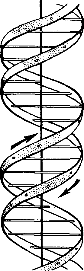 Полимерами называют вещества, молекулы которых состоят из одинаковых, периодически повторяющихся групп атомов. Например, полиэтилен имеет строение: (—СНг—СНг)>л>—СНг—СНг— ДНК — сложный полимер с молекулярной массой от 4 до 10 млн. Она состоит из двух полинуклеотидных цепей, образованных большим числом соединенных между собой нуклеотидов. В состав ДНК входит сахар дезоксирибоза (С5Н10О4). ДНК очень чувствительна к действию кислот и при гидролизе в молекулярном растворе соляной кислоты при 60°С через несколько минут распадается на нуклеотиды.