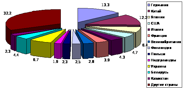 По данным международных организаций, объем накопленных российских инвестиций за рубежом составляет 138 млрд. долл. Основными - странами импортерами российского капитала являются Великобритания, Кипр, Нидерланды, Украина, Иран, Виргинские и Багамские острова. На долю этих стран приходиться около 65 % всех накопленных российских инвестиций.