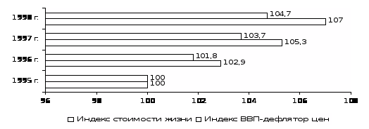 Среднее изменение цен за 1996-1998гг.,%