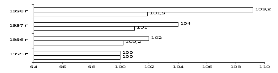 Соотношение 1998г. и 1990г.,% |