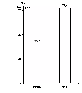 Рис. 2. Изменение ВВП в 1998г.по сравнению с этим же показателем в 1990г.,%