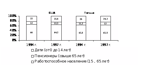 Рис. 1. Изменение численности населения в 1998г.по сравнению с численностью 1990г. в Аргентине и Канаде, %