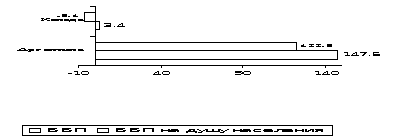 Рис. 3. Изменение ВВП и ВВП на душу населения в 1998г. по сравнению с этими же показателями в 1990 г., %