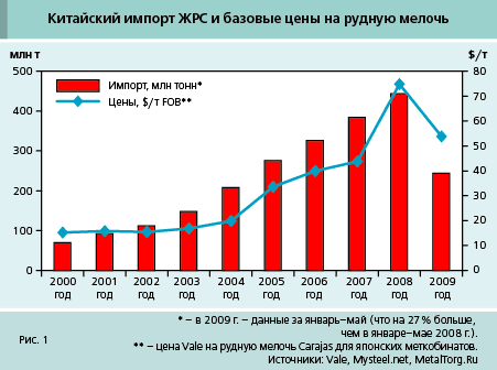 Напомним, что с 2000 по 2008 г. базовые цены на ЖРС выросли в 4 раза (до $75 за т FOB) благодаря огромному спросу со стороны Китая.