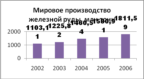 Мировые подтвержденные запасы железной руды по оценкам специалистов составили 212 664 млн. тонн. Производство товарных железных руд в мире в 2005 году составило 1580,91 млн. тонн2.