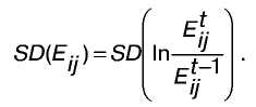 Волатильність взаємного обмінного курсу. Як показник, що характеризує волатильність номінального обмінного курсу валют, використалося стандартне відхилення значень логарифма темпу росту обмінного курсу національної валюти країни i до валюти країни j за розглянутий проміжок часу - SD(E):