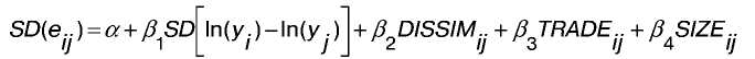Абсолютне значення різниці стандартних відхилень логарифмічних темпів росту реального ВВП (RGDP) або промислового виробництва для країн i иj (SD(Yij) або SD(IPij)) використався як показник, що характеризує розходження у волатильності реальних шоків: