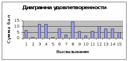 Итак, на основе проведенных данных получаем, что общий средний показатель по организации равен 200 баллов, что свидетельствует о положительной направленности социокультуры. А среднее значение по секциям равно 7 баллов, что свидетельствует о мажорном состоянии в коллективе.
