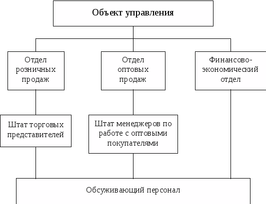 Для рассматриваемой фирмы ООО «Яркий свет» основу управления составляют отношения найма. В этой фирме собственник имеет возможность командовать, в связи с тем, что он, открывая производителю доступ к средствам производства, выступает в роли хозяина и нанимателя производителя. Субъектом управления в этой ситуации является собственник предприятия, а объектом управления является штат наемных сотрудников предприятия. Объект управления представляет собой структурированную группу сотрудников организации, схематично представленную на рисунке 1.