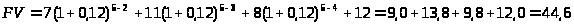 = 6000*(1+0,10)4-1 + 8000*(1+0,10)4-2 + 15000*(1+0,10)4-3 + 5000 = 7986 + 9680 +