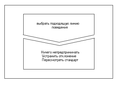После вынесения оценки процесс контроля переходит на третий этап. Менеджер должен выбирать одну из трёх линий поведения: ничего не предпринимать, устранить отклонение или пересмотреть стандарт.