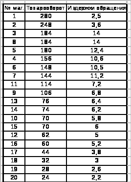 Товарооборот и издержки обращения 20 магазинов объединения за отчётный период (млн.руб.)