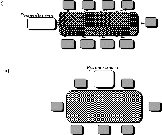 Место расположения руководителя-автократа (а) и руководителя-демократа (б)
