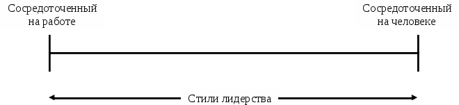 Рэнсис Лайкерт и его коллеги в Мичиганском университете разработали альтернативную систему, сравнивая группы с высокой производительностью труда и группы с низкой производительностью в различных организациях. Они считали, что разницу в производительности может объяснить стиль лидерства. Аналогично континууму по теориям “Х” и “Y” МакГрегора, руководители групп с высокой и низкой производительностью классифицировались по континууму, находящемуся в пределах от одной крайности сосредоточенные на работе (теория “Х”), до другой сосредоточенные на человеке (теория “Y”). Этот континуум представлен на Рис 2.