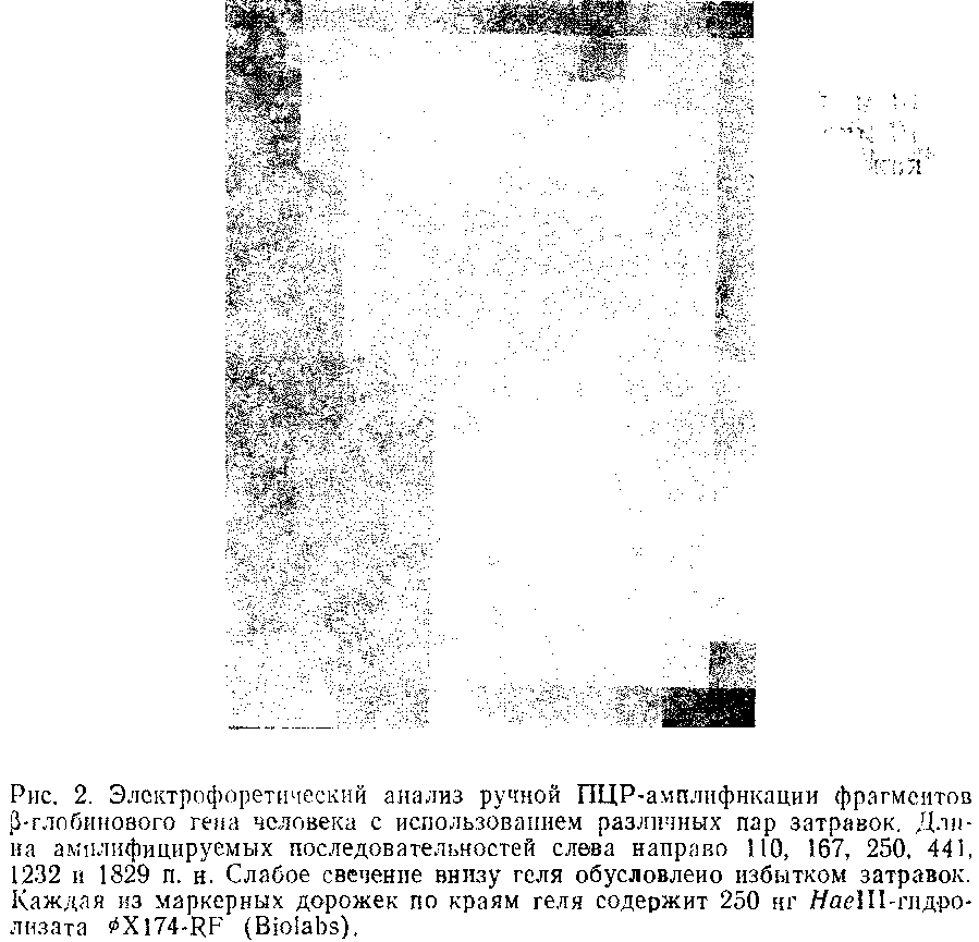 Методика, описанная в этом разделе, предназначена для проведения амплификации однокопийной последовательности ДНК длиной до 500 п. н. Детали ее могут быть изменены в соответствии с целями эксперимента. Реакционная смесь в объеме 100 мкл включает 1 мкг геномной ДНК человека, 1-кратный солевой буфер, 1 мм каждого праймера, 0,2 мм каждого dNTP и 2,5 единиц Гад-полимеразы. В приведенном частном примере район, а также с помощью гибридизации с олигонуклеотидными пробами. Теперь для этого разработан метод секвенирования амплифицированной ДНК без предварительного ее клонирования.