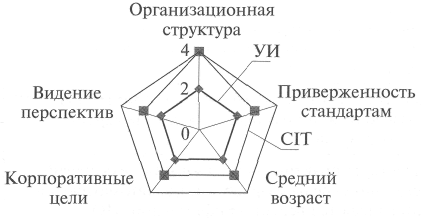 П. Учитывая возможность действия принципа «двойных стандартов» (рис. 6), выбрали следующую схему: «начало работы персонала по СММ» — «ввод информационных технологий» - «нормирование процессов» - «разработка комплекта документации». Таким образом, производственная культура в CIT выращивалась, а не навязывалась, как в УИ.