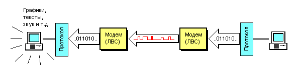 Протоколы локальной сети. Вообще, протоколы – это программы, которые обеспечивают транспортировку данных между устройствами, подключенными к сети. На рисунке схематично показан принцип действия любого протокола, локальной сети или сети Internet: