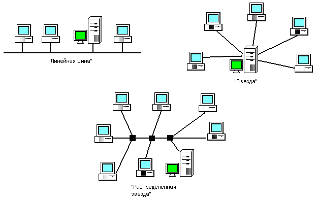 На рисунке приведено несколько топологий локальных сетей:
