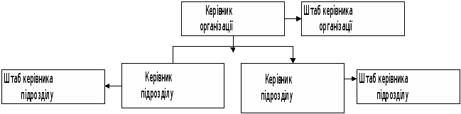 - в організації існує три рівні відповідальності і лінійна передача повноважень;