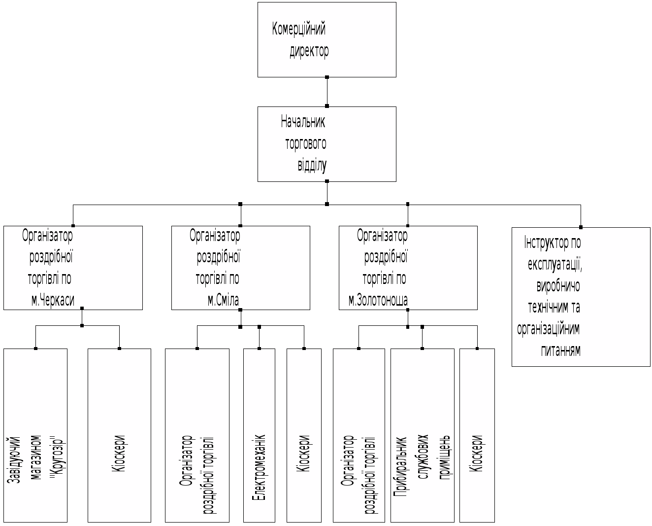 Для вирішення даних проблем автор пропонує вдосконалити організаційну структуру управління шляхом її спрощення, а отже скорочення рівней управління і кількості виробничого персоналу, а також розформування Золотоніської дільниці роздрібу.