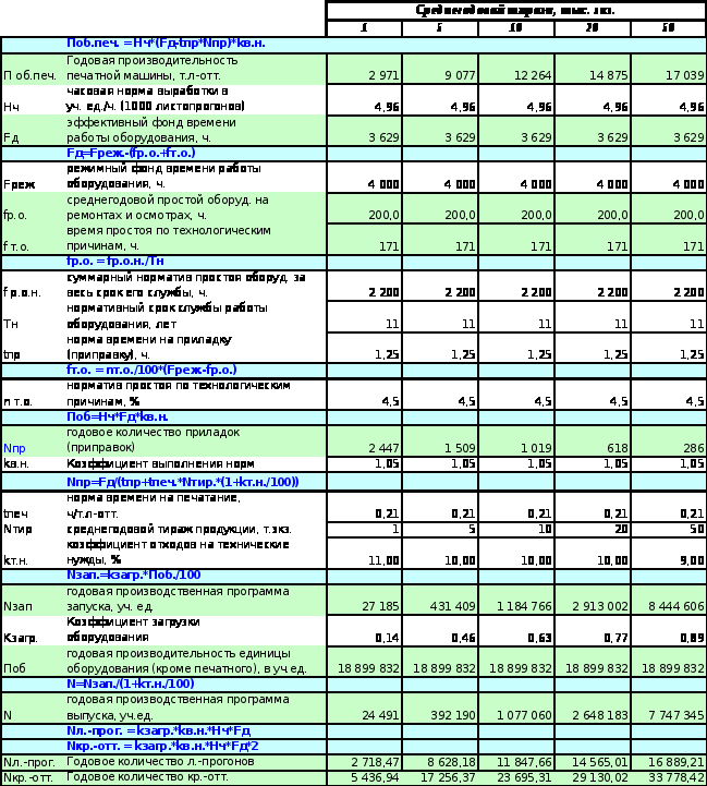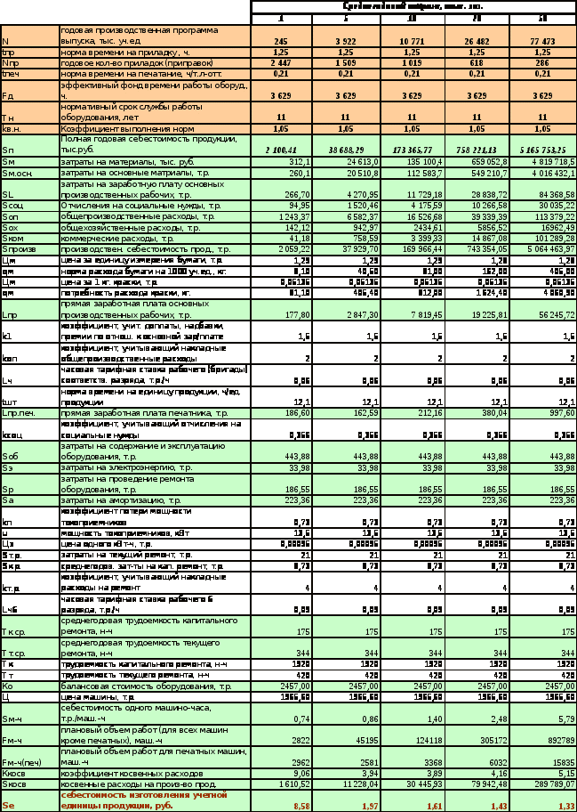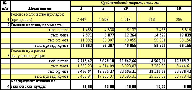б) Расчет годовой производственной программы и себестоимости печати учетной единицы изготавливаемой продукции.