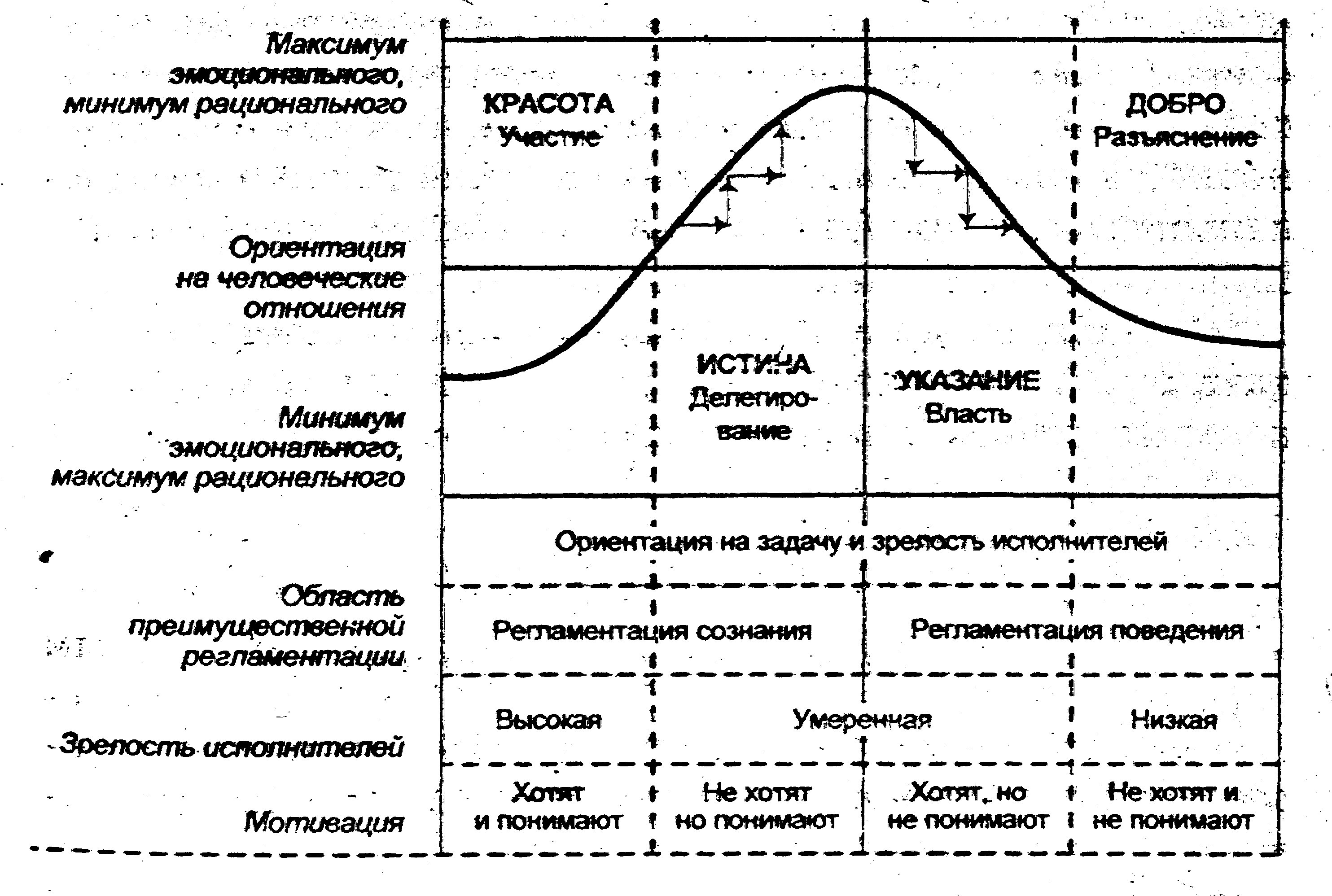 В работе с персоналом было разработано несколько моделей руководства, вот одна из них: