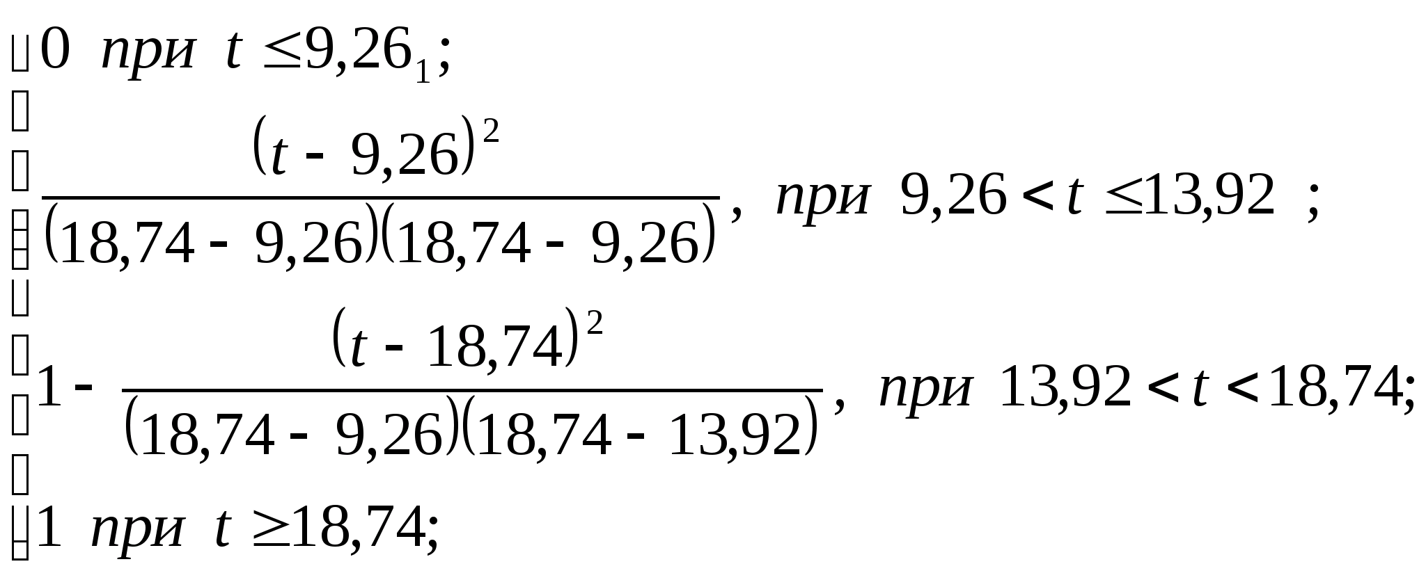 В первом задании по результатам расчета мы получили, что время начала массовых завершений всех работ t=9,26; среднее время окончания всех работ t13,77; время окончания всех работ t=18,74.