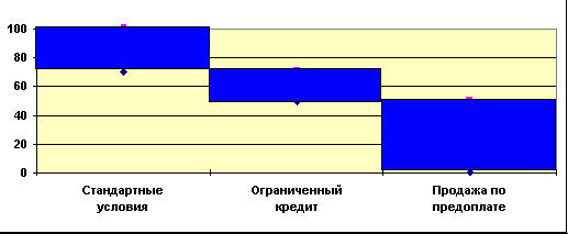 Разрабатывая стандарты предоставления коммерческих кредитов предприятия вовсе не вводит новые нормативы, обязательные к исполнению и однозначные в своем толковании. Стандарты скорее заключаются в минимально допустимых условиях, которые должны выполняться покупателями, чем в нормируемых величинах объемов и сроков кредитования. Поэтому чаще всего задаются стандарты не абсолютными значениями, а некоторыми интервалами.