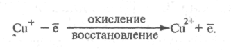 Одновалентная медь служит донором электрона и окисляется до Сu2+. В обратной реакции Сu2+ — акцептор электронов восстанавливается до Сu .