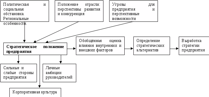 Выработка миссии и определение задач завершаются в форме выработки стратегии предприятия. Стратегия (в общем виде) – система управленческих и организационных решений, направленных на реализацию задач предприятия и выполнения обозначенной миссии.