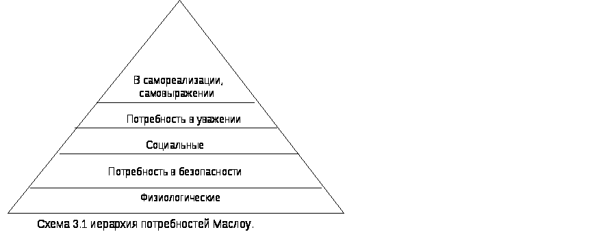 Маслоу утверждал, что поведение человека зависит от того, какой из пяти основных видов потребностей является на данный момент доминирующим. Каждый человек в одно и то же время имеет потребности всех пяти типов, но сила каждой потребности в какое-то конкретное время зависит от личностных приоритетов человека. В зависимости от этих приоритетов выстраивается иерархия потребностей. Маслоу утверждал, что основные пять типов потребностей почти всегда идут в порядке, показанном на схеме 3.1