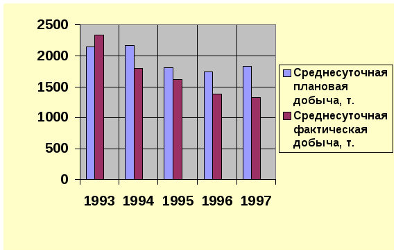 Обоснован план добычи угля на 1998 год, который составил 1941,521 тонн/сутки и 2175,993 тонн/сутки после реализации мероприятий по снижению трудоемкости процессов по добыче угля.