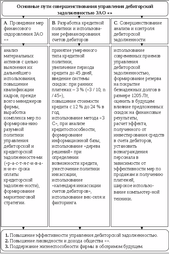разработки адекватной состоянию дел фирмы кредитной политики и внедрения в практику современных методов управления дебиторской задолженностью;