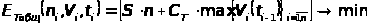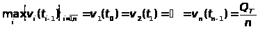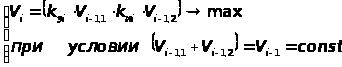 где n - число поставок, S - удельные издержки по поставкам, С>Т>-удельные издержки хранения ресурсов на складе,V>i>(t>i>>-1>) - объемы поставок, t - моменты поставок. Причем, запись V>1>(t>0>) означает, что первая поставка объемом V>1> осуществляется в начале интервала Т, т.е. в момент t>0> , а V>2>(t>1>) означает, что вторая поставка размером V>2> осуществляется в следующий момент времени t>1> и т.д. Поскольку очередная поставка осуществляется в момент, когда уровень запаса понизится до нуля, то имеет место соотношение