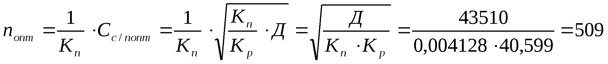 Проводя дифференцирование и приравнивая к нулю получившееся выражение, можно получить следующую формулу для определения оптимального числа поставок