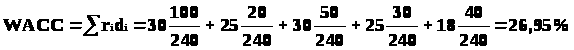 Вывод: если проект обеспечивает норму прибыли не менее чем 27%, то все собственники капитала (участники проекта) получат свою цену. Если рентабельность проекта ниже чем WACC, то можно попытаться изменить структуру и состав источников.
