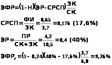 Таким образом использование заемных средств увеличило рентабельность на 5% (это и есть эффект финансового рычага).