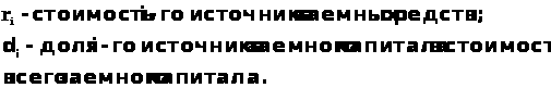 d>i> – доля (удельный вес) i–го источника в стоимости капитала фирмы;