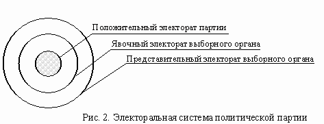 Рейтинг R является информационно-количественной характеристикой значимости голосов тех депутатов, которые избирались, как принято говорить, по мажоритарным округам. Вместе с тем значительную часть депутатов законодательных органов власти в настоящее время составляют депутаты, избранные по партийным спискам. Естественно, что рейтинг (R*) этих депутатов, имея такую же сущность, что и рейтинг R, должен оцениваться по иной методике, учитывающей уже особенности электоральной системы той или иной политической партии, преодолевшей на выборах в законодательное собрание проходной избирательный барьер. Электоральная система политической партии (рис. 2) включает в себя при этом три основных фактора (системных объекта):