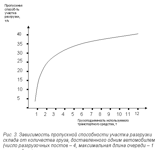 Надежность и экономичность работы склада зависит от того, насколько правильно определено количество постов для выполнения погрузочно-разгрузочных работ. Увеличение этого количества влечет за собой рост строительных затрат и эксплуатационных расходов, сокращение — увеличивает очередь ожидающего обслуживания транспорта, т.е. увеличивает потребность в площади для парковки и маневрирования. Кроме того, ожидание разгрузки — это расходы, связанные с простоем транспортных средств.