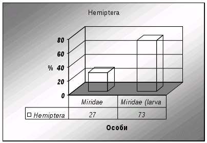 В ходе проведенного исследования в пределах зоны экотона субальпийского пояса была изучена и апробирована методика сбора полевого материала при помощи энтомологического сачка, собрана коллекция насекомых по трем основным группам – Orthoptera, Coleoptera, Hemiptera и Homoptera.