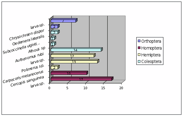 В результате исследования данного участка была проведена сравнительная характеристика основных групп насекомых травяного покрова. Соответственно, наиболее сильные различия наблюдались в зоне экотона, что связано с различиями переходной зоны