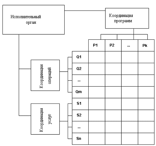Сведения о выпускаемой продукции могут быть использованы для определения целей организации. Для этого, например, можно провести классификацию продукции по ее видам или качественным характеристикам. Элементами структуры, ответственные за обеспечение производства продукции или предоставления услуг потребителем вне данной организации, называют программами и обозначают P1, P2,. . . , Pr. Средства, используемые программами ( или видами деятельности ), обычно можно подразделить на операции и услуги.